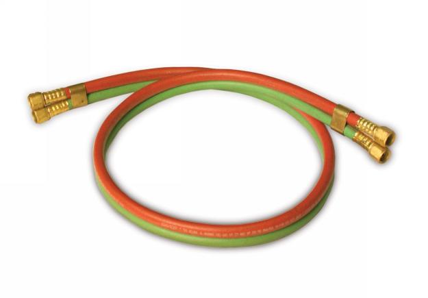 Reelcraft Inlet Hose Assembly - 1/4" ID x 2' "T" Grade Twin Welding hose with female fittings. Use with Reelcraft Reel Series TW 5000 T & TW 7000 T, up to 200 PSI. A flexible hose connection must be used between the hose reel inlet and the source of supply to prevent possible misalignment and binding or warranty is void.